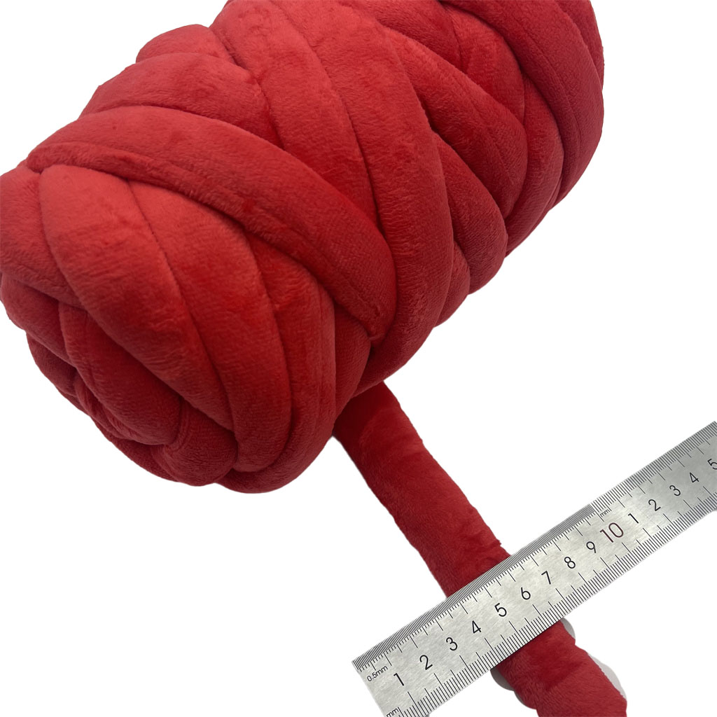 Tento produkt je veľkoobchodne vyrábaná polyesterová efektná priadza špeciálne navrhnutá na pletenie prstov. Priadza je konštruovaná ako zamatová trubica s konzistentným priemerom 2 cm, čo jej dodáva podstatný, trojrozmerný tvar. Jeho zloženie je zmesou polyesteru a bavlny, ktorá kombinuje štrukturálnu stabilitu a pružnosť polyesteru s prirodzeným dotykom bavlny. Táto kombinácia materiálov prispieva k definovanému tvaru a hmatovým vlastnostiam priadze. Predtvarovaná rúrková štruktúra uľahčuje proces pletenia prstami, čo umožňuje efektívne vytváranie textúrovaných látok a doplnkov bez potreby tradičných nástrojov. Jeho rozmery a konštrukcia ho predurčujú na výrobu predmetov s objemnou a jemnou textúrou.