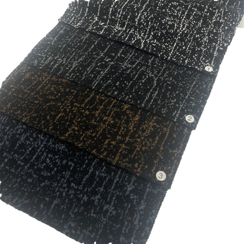 Táto tkanina, označená ako článok 182811-1, je pletená textília navrhnutá pre aplikácie športového oblečenia. Skladá sa zo zmesi vlákien obsahujúcej 65 % polyesteru, 28 % nylonu, 5 % akrylu a 2 % vlny, s plošnou hmotnosťou 820 g/m. Povrch má vodný vzor integrovaný do štruktúry pleteniny počas výrobného procesu. Táto kombinácia viacerých vlákien vytvára špecifické výkonnostné charakteristiky: polyester poskytuje štrukturálny základ, nylon prispieva k odolnosti, akryl dodáva objem a vlna ovplyvňuje riadenie vlhkosti. Hmotnosť a konštrukcia látky prispievajú k jej izolačným vlastnostiam a rozmerovej stabilite, vďaka čomu je použiteľná na technické vrchné oblečenie v aktívnych situáciách.