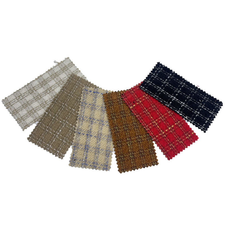 Táto látka, označená ako artikel 3764, je tkaná tvídová textília zložená zo 100 % iných vlákien. S plošnou hmotnosťou 560 g/m predstavuje stredne ťažkú až ťažkú konštrukciu. Povrch kombinuje károvaný vzor so ženilkovou štruktúrou, ktorá prešla procesom kefovania. Táto dokončovacia technika vyzdvihuje vlákna zo ženilkových priadzí, čím vytvára mäkkú povrchovú štruktúru. Šachový dizajn je tvorený súhrou farebných priadzí v procese tkania, pričom sa zachováva geometrická presnosť. Výsledkom týchto výrobných techník je tkanina s vizuálnou definíciou vzoru a výraznou hmatovou kvalitou. Tento tkaný tvíd je použiteľný pre dámske oblečenie, kde sa vyžaduje povrchová zaujímavosť a štrukturálna integrita.