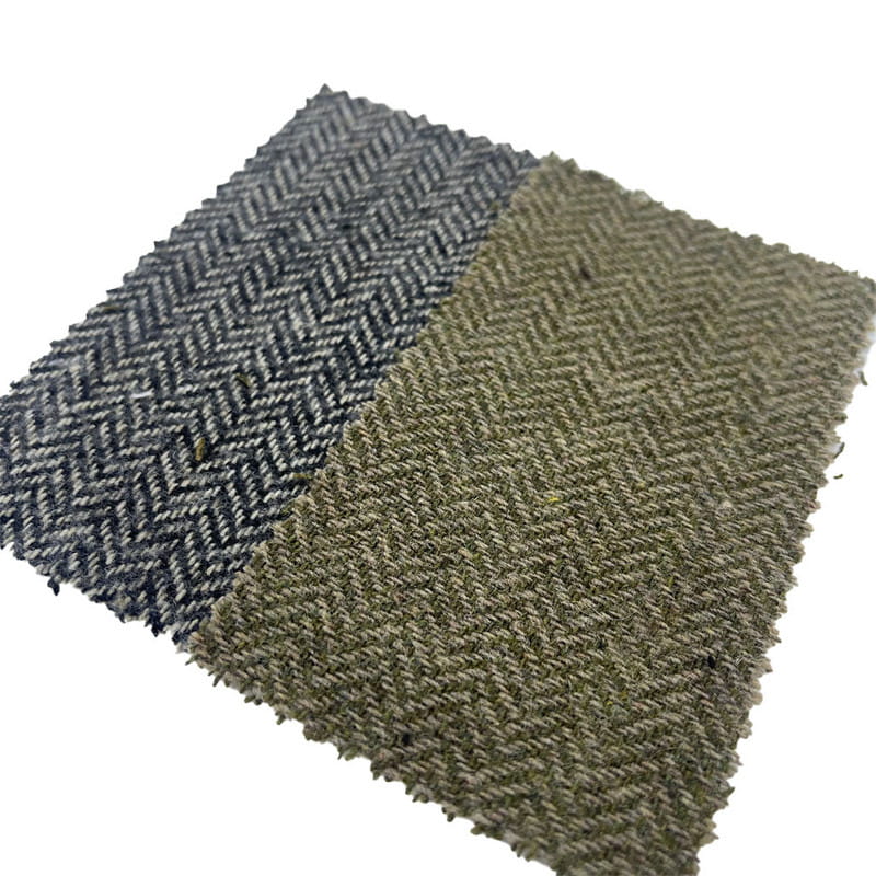 Táto látka, označená ako výrobok 3531, je tvídová textília zložená z 20 % vlny a 80 % iných vlákien. S plošnou hmotnosťou 480 g/m predstavuje stredne ťažkú konštrukciu. Na povrchu je sivý a zelený vzor rybej kosti, dosiahnutý špecifickou technikou tkania, ktorá vytvára súvislý motív v tvare V. Táto väzbová štruktúra vytvára diagonálny rebrový efekt cez povrch látky. Zloženie vlnenej zmesi prispieva k tepelnej regulácii tkaniny a jej odolnosti voči pokrčeniu. Výsledkom týchto technických vlastností je tkanina so smerovou textúrou a štrukturálnou integritou, vďaka čomu je použiteľná pre nohavice, kde sa vyžaduje definícia vzoru a odolnosť.
