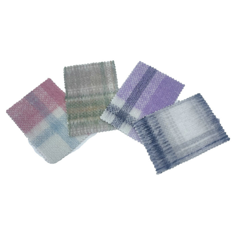 Táto látka, označená ako výrobok 3940, je žakárová textília zložená z 10 % vlny a 90 % iných vlákien. S plošnou hmotnosťou 600 g/m predstavuje ťažkú konštrukciu. Fialový povrch kombinuje kockovaný vzor s dlhou vlasovou textúrou, dosiahnutou pomocou špecializovaných techník žakárového tkania a konečnej úpravy. Tento výrobný proces vytvára na povrchu tkaniny predĺžené slučky vlákien, výsledkom čoho je výrazná trojrozmerná štruktúra. Zloženie vlnenej zmesi prispieva k tepelnoizolačným vlastnostiam a odolnosti tkaniny. Tieto technické vlastnosti vytvárajú materiál so značnou hĺbkou a objemom povrchu, vďaka čomu je použiteľný pre vrchné nátery, kde sa vyžaduje zvýšená hrejivosť a textúra.