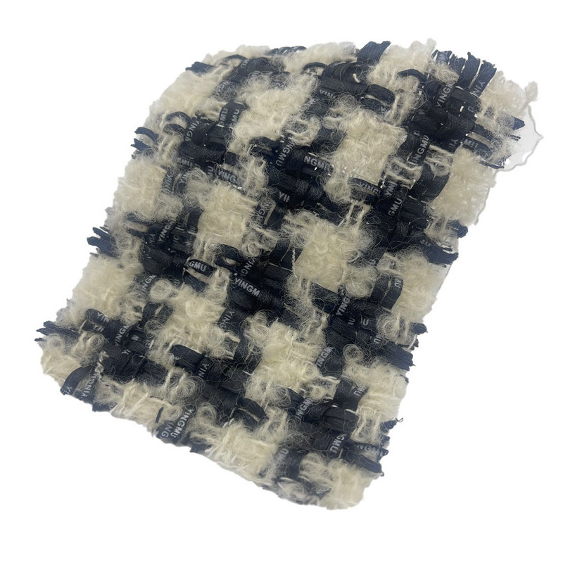 Táto látka, označená ako artikel 23548, je vlnená tvídová textília zložená z 38 % polyesteru, 36 % vlny a 26 % bavlny. S hmotnosťou na jednotku plochy 410 g/m2 predstavuje stredne ťažkú konštrukciu. Šedobiela a čierna farebná schéma je votkaná do kockovaného vzoru, vylepšeného technikou povrchového kefovania, ktorá vytvára vyvýšenú textúru podobnú medvedíkovi. Tento dokončovací proces vytvára hustý povrch s krátkym vlasom, ktorý mení hmatové vlastnosti látky. Vláknové zloženie prispieva k štrukturálnej stabilite tkaniny a regulácii vlhkosti. Vďaka týmto vlastnostiam je tento česaný tvíd použiteľný pre odevy vyžadujúce vizuálnu definíciu vzoru a výraznú textúru povrchu.